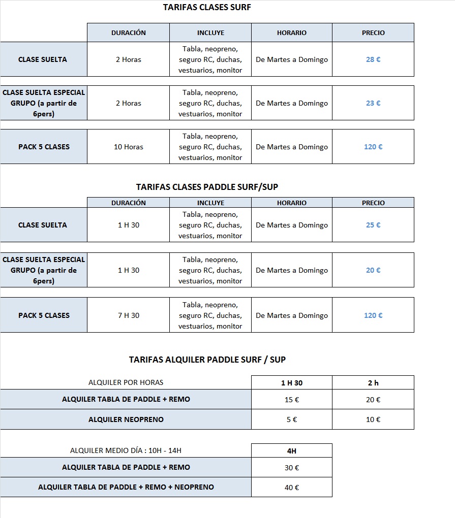 La realización de las clases de surf dependerán de las condiciones del mar, informando a nuestros alumnos de su estado.