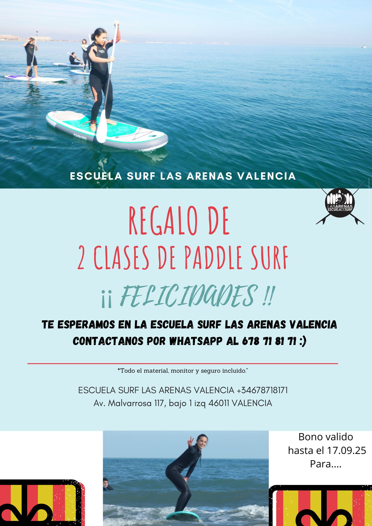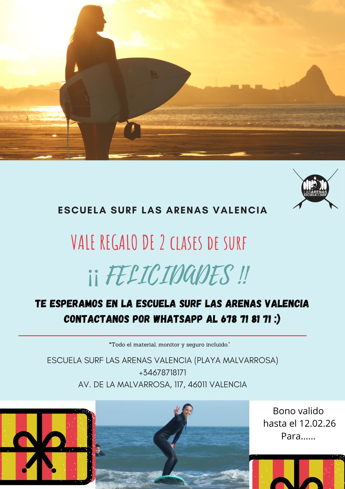 IDEAS DE REGALO El bono de clase o alquiler tiene una validez de 6 meses a partir de la fecha de compra. Para info y/o compra por whatsapp: 678718171 o email: surflasarenas@gmail.com Algunas ideas de regalos… Compártelo: Haz clic para compartir en X (Se abre en una ventana nueva) X Haz clic para compartir en Facebook (Se abre en una ventana nueva) Facebook Me gusta Cargando...
